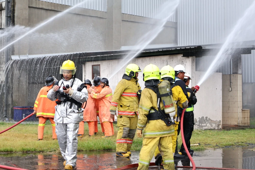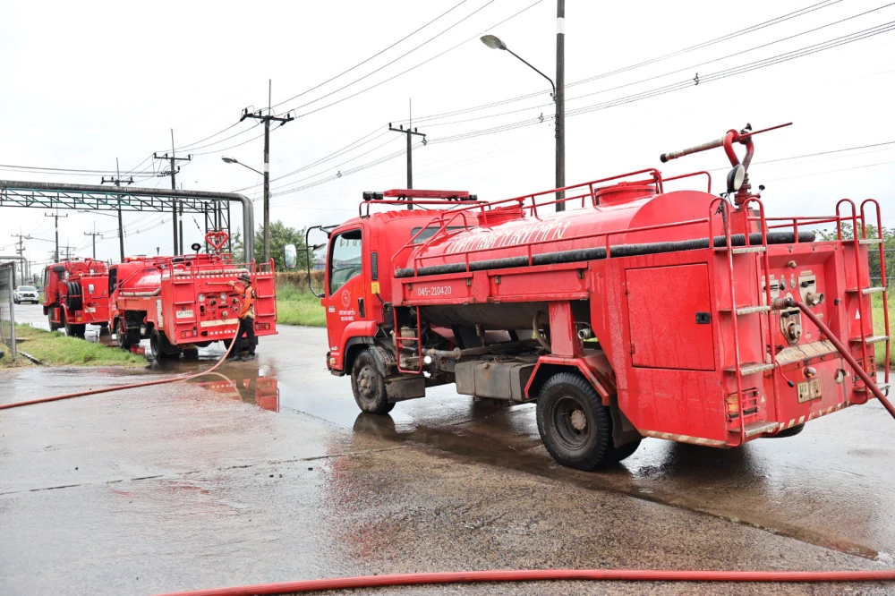 For the 2025 drill, scenarios were simulated during the day at the boiler production building and at night at the cassava-chip warehouse, ensuring comprehensive and realistic training across different work conditions. The drill was conducted with the support and cooperation of several governmental disaster prevention and emergency response units, including the Disaster Prevention and Mitigation Regional Office 13 Ubon Ratchathani, Warin Chamrap Municipality, Na Di Subdistrict Administrative Organization, Tha Chang Subdistrict Municipality, and Na Yia Hospital.