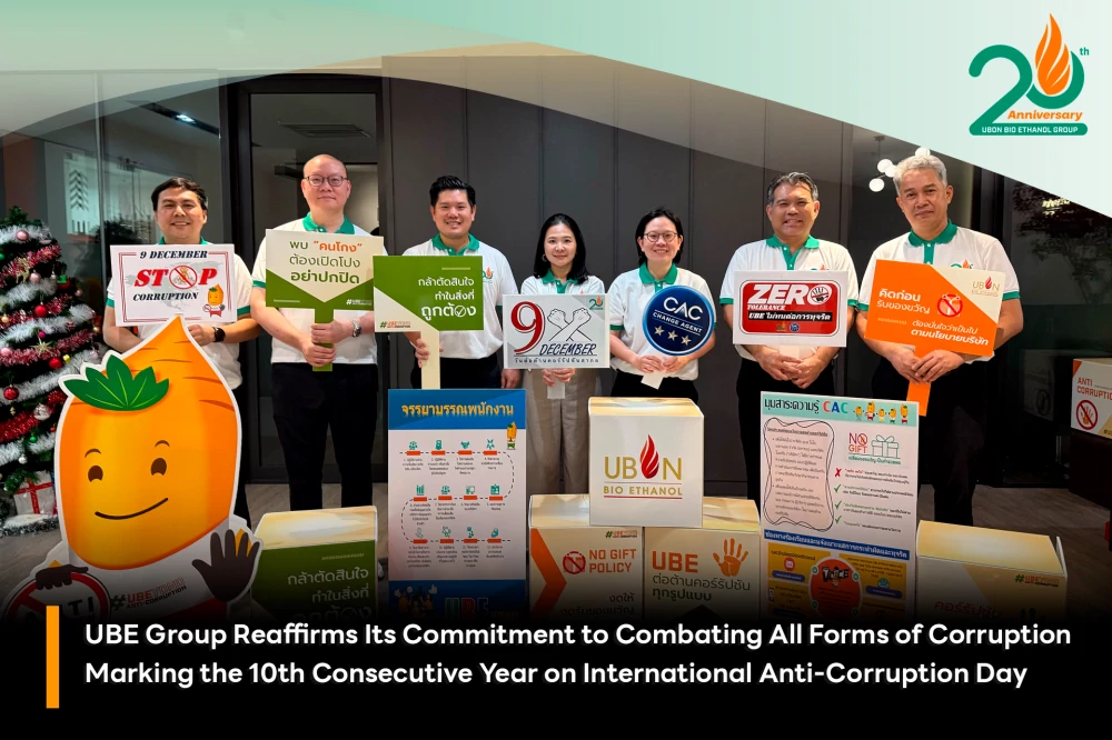 On December 9, 2025 - Ms. Sureeyot Khowsurat Chief Executive Officer and Managing Director, led the executives and employees of Ubon Bio Ethanol Public Company Limited and its affiliates, “UBE Group,” in the UBEYOND Anti-Corruption 2025 activity in recognition of International Anti-Corruption Day. The event reinforced the Group’s unwavering commitment to operating with transparency, accountability, and adherence to the principles of Good Corporate Governance now carried forward for the tenth consecutive year as part of strengthening an ethical and integrity-driven organizational culture.