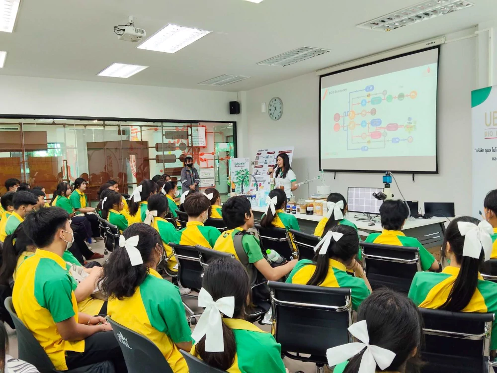 During the visit, UBE GROUP provided students with hands-on learning experiences through live demonstrations conducted by the laboratory team. The students gained insights into real industrial operations within the bio-based industry, from ethanol production processes to product quality control systems in accordance with industry standards. The session also highlighted the critical role of chemists in bio-industrial operations and illustrated how knowledge in chemistry, science, and technology is applied to develop high-quality products while upholding environmental and social responsibility.
