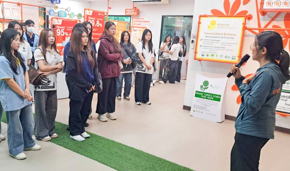 The visit aimed to provide students with an overview of corporate management, production processes, and business operations in Thailand’s bio-based industry. Students also learned about organizational structure and cassava-based ethanol production.