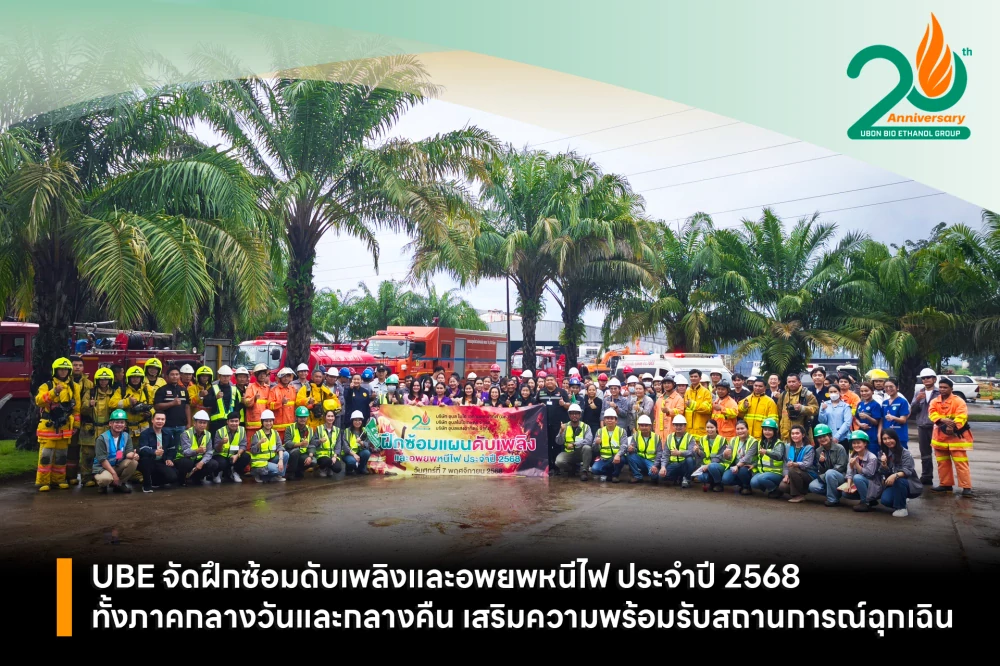 วันที่ 7 พฤศจิกายน 2568 บริษัท อุบล ไบโอ เอทานอล จำกัด (มหาชน)(“UBE”) บริษัท อุบล ไบโอเกษตร จำกัด(“UBA”) และบริษัท อุบลแสงอาทิตย์ จำกัด(“USA”) ได้จัดการฝึกซ้อมดับเพลิงและอพยพหนีไฟประจำปี 2568 ทั้งในช่วงภาคกลางวันและภาคกลางคืน เพื่อยกระดับความรู้ ความเข้าใจ และความพร้อมของพนักงานในการรับมือเหตุฉุกเฉินด้านอัคคีภัย ซึ่งเป็นไปตามกฎกระทรวงแรงงาน เรื่องกำหนดมาตรฐานในการบริหารจัดการและดำเนินการด้านความปลอดภัย อาชีวอนามัย และสภาพแวดล้อมในการทำงานเกี่ยวกับการป้องกันและระงับอัคคีภัย พ.ศ. 2555 ด้วยการฝึกซ้อมดับเพลิงและอพยพหนีไฟให้กับพนักงานอย่างน้อยปีละ 1 ครั้ง เพื่อเสริมสร้างความปลอดภัยในสถานที่ทำงาน
