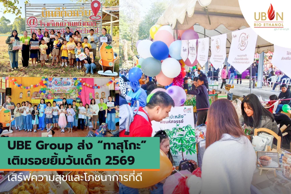 เมื่อวันที่ 10 มกราคม 2569 บริษัท อุบล ไบโอ เอทานอล จำกัด (มหาชน) และบริษัทในเครือ (“UBE Group”) ร่วมเป็นส่วนหนึ่งในการสร้างรอยยิ้ม ความสุข และโอกาสการเรียนรู้ให้กับเด็กและเยาวชน เนื่องในโอกาสวันเด็กแห่งชาติ ประจำปี 2569 ภายใต้คำขวัญประจำปี “รักชาติไทย ใส่ใจโลก” สะท้อนเจตนารมณ์ในการพัฒนาคุณภาพชีวิตเยาวชนที่จะเป็นพลังสำคัญของประเทศในอนาคต